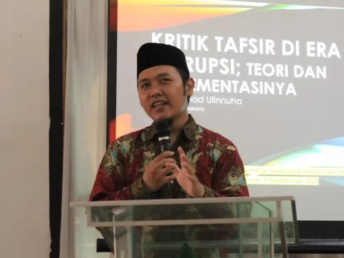“Kalau dulu Imam Asy-Suyuthi memberikan parameter lima belas kompetisi akademik yang harus dikuasai oleh calon mufassir, harus ngerti ilmu lughah al-arabiyah, ilmu balaghah dengan tiga dimensi pembahasan, mengerti ilmu fikih wa ushuluhu, ilmu hadist wa mustholahu seterusnya, dan teakhir ilmu mauhibah. Rasanya hari ini, prasayarat itu sulit terpenuhi, apalagi di era digital seperti ini.”