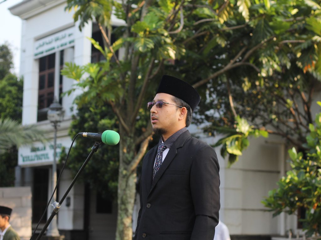 K.H. Muhammad Yusron Shidqi (Pembina Upacara) tengah menyampaikan amanat