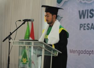 Dalam sambutan tersebut, beliau mengatakan bahwa sebagai umat Nabi Muhammad Saw., kita memiliki tantangan tersendiri untuk beradaptasi dengan perubahan dan menguatkan diri dengan keimanan. “Judul yang diusung pada momentum wisuda dan pengukuhan tahun ini mirip dengan kaidah yang disampaikan oleh ulama. Bahwa esensinya adalah merangkap nilai-nilai luhur yang dahulu dan beradaptasi dengan nilai-nilai yang berkembang saat ini. Kaidah ini memiliki semangat bahwa manusia memiliki sifat perubahan. Maka perubahan merupakan sesuatu hal yang tidak bisa dielakkan terhadap kehidupan manusia. Barangsiapa yang mampu beradaptasi dengan baik maka ia yang akan bisa memenangkan pertarungan,” ujar beliau.